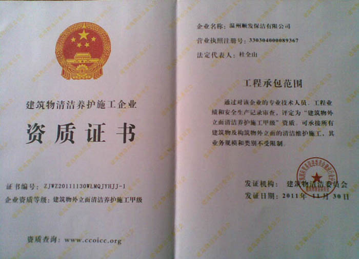上一證書:會員證書   下一證書:石材養(yǎng)護施工資質(zhì)證書 >>返回
